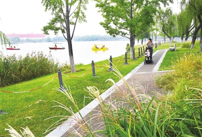 西安世博园水系改造和绿化景观提升工程,浐河堤防加固改造工程,桃花潭区域整治提升工程,一系列工程的实施,让浐灞生态区草更绿、水更清、城更美。西安世博园水系改造和绿化景观提升工程,进一步完善了世博园水系的基础设施,打造滨水生态景观,提升后的西安世博园更加美丽宜人,湖水荡漾,一呼一吸尽享自然舒畅。如今,这里河畅、水清、岸绿、景美,为市民提供了一个休闲好去处。■种楠