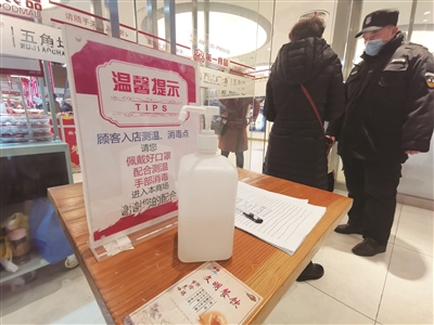本报讯 春节将至,不少市民都会前往商场、超市采购年货。那么商场的疫情防控措施落实得如何?1月26日,记者在第一食品杨浦万达店看到,商场进口处严格落实佩戴口罩、测量体温、查验随申码,加强疫情防控不松懈。