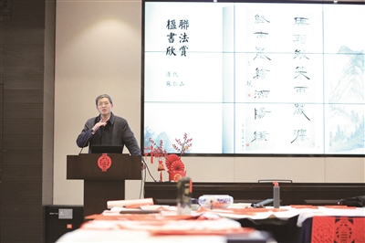 直播中,张卫东分享了楹联起源、楹联常识、楹联书写规范、奇联欣赏等相关知识,带领线上读者一起欣赏了清代书法家赵之谦、胡澍、何绍基的部分优秀楹联书法,以及全国楹联书法作品展中的获奖作品。