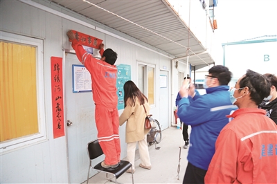 “江河湖海架金桥,东西南北铸福路。”为路桥工人专门写的对联,尤其受到工友们的喜爱,“一下子就有了年味。”正逢工友们回到宿舍,大家当场就把春联贴上门,感受这满满福气和春意。