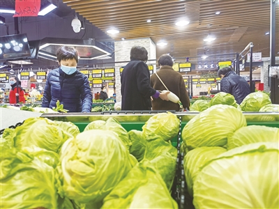 一方面,联合欧尚中原店、欧尚长阳店、大润发、永辉超市隆昌路店等4家大型超市,增设政府平价蔬菜专柜,每天为市民提供一定品类的平价蔬菜。另一方面,联动区内市属企业以及重点电商企业,让利于民。如,由达达集团联动京东到家平台线下门店和众多品牌,在全国范围发放超10亿元人民币的补贴,助力2021年“全国网上年货节”,沃尔玛五角场店等多家零售、商超门店参加活动。同时举办年货先回家、春节不打烊、国民好礼、开工补给等多重营销活动。此外,联华股份也组织区内27家联华超市连锁门店(含世纪联华、华联吉买盛),选取10种平价蔬菜,从1月29日开始至元宵节,线上线下同步举办“天天平价菜”活动,满足消费者的采购需求。
