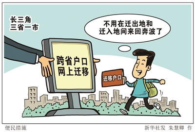 记者2月19日从上海市公安局获悉,长三角区域三省一市公安机关共同推出了跨省户口网上迁移便民措施。19日起,上海、浙江、江苏、安徽(合肥)的户籍居民在长三角区域内跨省迁移户口时,只需在迁入地公安派出所申请办理即可,再也不用在迁出地和迁入地间来回奔波。 ■新华社 朱慧卿