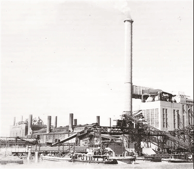 杨树浦发电厂曾有一座高达105米的大烟囱。它就像屹立在黄浦江边的一座航标灯,远洋轮船一进入吴淞口,船上的乘客一看见它便知抵达了上海。那座老烟囱建成于1941年,是当时发电厂为高温高压锅炉专门配备的,外部是美国进口的钢板,内部衬有耐火砖。特殊的地理位置与傲视上海滩的高度使它成为了当时上海的地标性建筑。