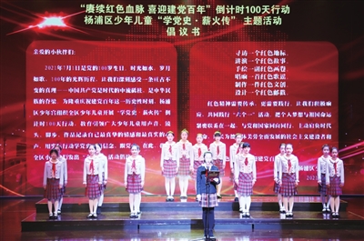 本报讯 3月23日,“赓续红色血脉喜迎建党百年”倒计时100天行动——杨浦区少年儿童“学党史·薪火传”主题活动启动仪式在区少年宫举行。