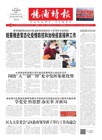 杨浦时报一版要闻01学党史 悟思想 办实事 开新局 2021-03-30 2 2021年03月30日 星期二