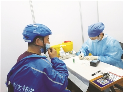 武丽从事配送工作已有6年时间,是达达配送平台的“佼佼者”。“早就想来接种疫苗了,但总是没有时间。这次集体组织接种,我第一时间就报名了。”