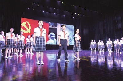 主题集会活动在少年宫梦想剧场拉开帷幕,以“与百年对话”“与杨浦同行”“与未来相拥”三个篇章, 围绕“学党史·薪火传”主线,依托杨浦红色史迹,以艺术展演为载体,集中展现杨浦区少年儿童活动教育成果。■记者 王修远 摄