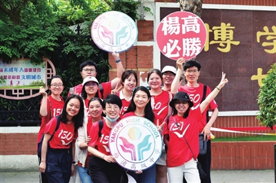 薛侃指出,高考事关百姓切身利益和社会和谐稳定,各考点要提高政治站位,聚焦重要环节,严格细致做好各项准备工作,科学精准落实疫情防控措施,确保零差错、零事故。各部门要强化协同联动,压实主体责任,凝聚护考合力,提升服务水平,为广大考生营造舒心、安全、有序的考试环境,切实保障高考顺利进行。图为6月7日, 2021年高考的第一天,在复旦实验中学考点,不少学生提早抵达考场外。高考必胜贴、红色旗袍成为助威利器,红色送考服则表达着与考生同舟共济、一起战斗到底的鼓励。