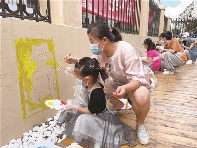 这次的彩绘创作以社会主义核心价值观为主题,顾天彧小朋友负责“富强”板块,第一次做“粉刷匠”,但在两个多小时的工序里,他坚持用心描绘好每一道线条,填涂好每一个色块。“今天我学会了做任何事情都要有耐心。”顾天彧告诉记者。而一位陪同孩子前来的家长表示,这样的活动很有意义,能让孩子们从小对社区管理有参与感。