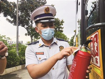 车上配备的灭火器是否是合格产品、是否处于有效期、是否悬挂日常巡检标牌等则是消防部门重点检查的内容。杨浦消防支队防火监督员孟庆豪介绍,如巡检标牌正常悬挂和填写,就说明灭火器一直处于监管中,可及时用于灭火。