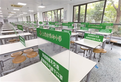 同时,铁岭中学已提前进入“防疫状态”,测温设备、临时留观区、防疫物资、食堂餐桌设置隔板等都已各就各位。“最近我们通过线上家长会,对全体家长介绍了学校的开学工作方案,每个班级也在线开展班会课,对学生防疫、卫生,包括返校、开学做了非常细致的指导。目前学校已经做好了全面消杀,准备好了充足的防疫物资。”铁岭中学校长、党支部书记张贤臣说,学校有1000多名学生,学校会安排学生错峰入学、用餐、放学,减少人员聚集。