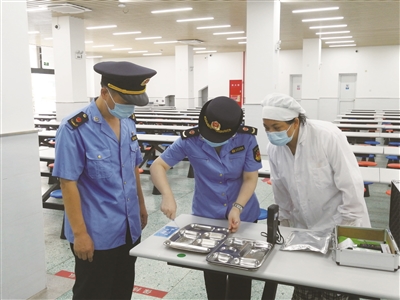 开学季,区市场监管局开展校园食品安全守护行动。近日,长白新村街道市场监督管理所来到上海理工附属初级中学开展食品安全专项检查。该校餐厅属有证经营,工作人员均持有从业人员安全档案,餐盘、餐台卫生均符合标准,食品安全管理工作也遵循推进“互联网+明厨亮灶”的智慧模式。接下来,区市场监管局将陆续对辖区内校园食品安全、校园周边食品安全、学校配餐单位食品安全开展有针对性的排摸检查,确保问题整改落实到位,筑牢食品安全防线。