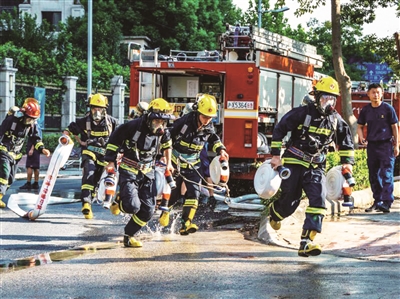 本报讯 杨浦消防近日举行夏季执勤岗位大练兵比武竞赛,以苦训对抗酷暑,保护杨浦一方平安。