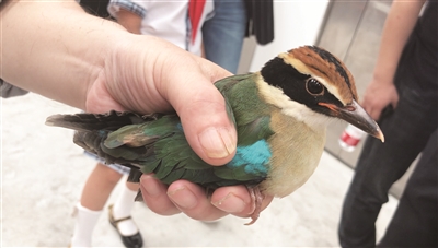 家人随即在网上查询,初步判断,这可能是一只国家二级保护动物:仙八色鸫。网上资料显示,仙八色鸫这种鸟,目前全球仅存不到一万只。