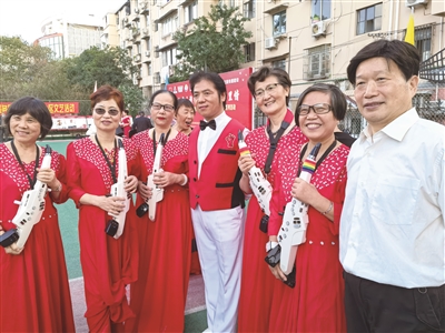 不过,最让大家感到惊喜的,还是看到许多熟悉的“老邻居”上台。来自控江北片区的“茉莉花舞蹈队”,凤城北片区的“嗨!银发团队”,凤城南片区罗兰电子管乐队,这些都是来自各个居民区的“草根明星”。他们接地气的演出,引发了社区居民的共鸣。