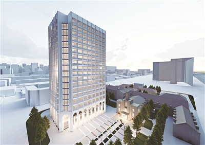 在建筑底部入口的位置,将通过连续拱券长廊的设置,传承圣心教堂的文化与建筑语言,为新大楼增添古典、优雅的格调。