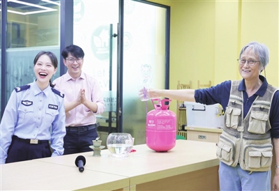 为加强反诈宣传,杨浦公安分局特别聘请同济大学物理学退休教授、“不刷题的吴姥姥”吴於人,成为杨浦公安分局义务反诈宣传员。当天,团队成员严朝俊和杨浦公安分局反诈民警楼嘉倩,首先借用一个“贪心杯”喝水实验,来演示“贪心”带来的巨大损失。