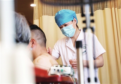 8月18日,江苏省苏州市姑苏区金阊街道彩香二村社区卫生服务站医生为居民进行针灸诊疗。 2025年8月19日是第八个中国医师节,今年的节日主题是“德馨于行,技精于勤”。 ■新华社发 杭兴微 摄