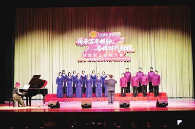 由杨浦区总工会主办的“传承百年根脉,奋楫时代新程”杨浦职工合唱大赛决赛,近日在杨浦区沪东工人文化宫落幕。一首首经典与时代新歌交织,唱响了杨浦职工对党和祖国的深沉热爱,也抒发了他们积极投身时代建设、奋力谱写新篇章的豪情与朝气。
