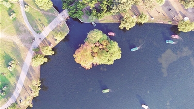 从初秋的淡雅到深秋的浓烈,这里的秋,是持续整个季节的渐变盛宴。沿着蜿蜒小径,丝棉木与悬铃木各展风姿。榉树的叶片由绿渐次转为温暖的橙红,槭树则披上鲜艳的绛红与金黄,层层叠叠,枝叶扶疏间光影斑驳。最是橙黄橘绿时,不妨在林间漫步,听脚下落叶沙沙作响,感受时光静好,或是在湖边小坐,看水鸟嬉戏,偷得浮生半日闲。■记者 王歆瑜 王子亮