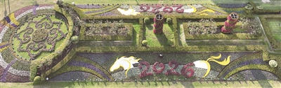 记者走访发现,位于五角场环岛核心区的黄兴路淞沪路路口顶板花坛,紧扣2026年生肖“马”的灵动形象与春节喜庆主题,通过巧妙设计融合文化内涵与视觉冲击力。