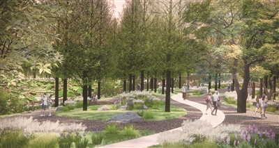 “无界”是此次改造的核心亮点,为深度落实公园城市理念,改造将拆除大部分的原有围墙,以绿篱、灌木等生态软隔离替代,让公园绿意与城市街景自然衔接。同时,新增6处人行出入口,让市民便捷入园,提升公园可达性与街区融合度。