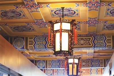 绿瓦大楼的建筑面积约9000平方米,其中大部分彩绘纹样需要按传统工艺重绘。面对五蝠捧寿等极高难度的彩绘,项目方特邀故宫博物院等机构的古建专家现场指导,确保了纹样、色彩、工艺的准确传承。
