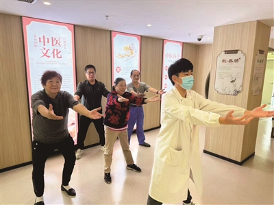 在这里,医生在原有西药基础上,为他开了中药“平肝潜阳方”,并教了他一套“降压气功”。从此,他除了服药,(下转第4版)(上接第1版)每周坚持练功五天。半年下来,变化悄然发生。如今,医生已经把他的高血压药物剂量下调至小剂量,血压却依旧稳稳当当。