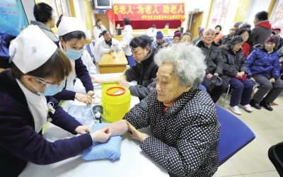 四平路街道热心居民组成的志愿者服务队,近日搀扶辖区22个居委会的300余名(支边、支疆、支内)“三支”回沪特困、行动不便的老人,来到鞍山七村居委会老年活动室,接受由街道社区卫生服务中心提供的免费体检服务。全科医生和护士除了进行常规检查,还询问了老人的日常生活习惯和赡养护理情况,并为他们建立健康档案。 ■种楠 摄