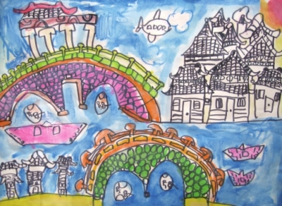 区少年宫组织书画社的学员们来到朱家角,感受江南水乡建筑特色。同学们用摄影、写生的方法,记录民居室内梁架结构,窗格上的传统中国民族花纹,瓦当上的花纹。孩子们构图大胆,想象力丰富,笔触富有激情。