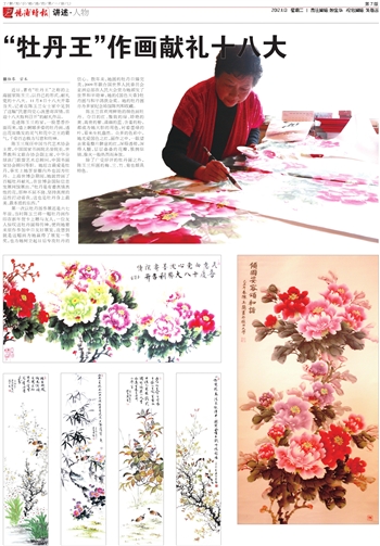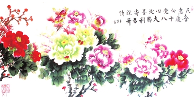 近日,素有“牡丹王”之称的上海画家陈玉兰,以自己的形式,献礼党的十八大。11月8日十八大开幕当天,记者在陈玉兰女士家中见到了这幅“民意向党心泼墨寄深情,喜迎十八大胜利召开”的献礼作品。