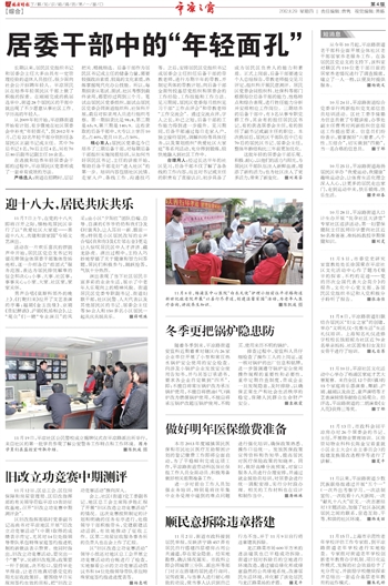 这批年轻的居委会干部乐观、积极、耐心,以他们的活力与阳光,为居民区干部队伍注入新鲜血液,增添了新的活力;也为社区注入了更多活力,带来了新变化。 ■刘英芬