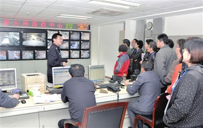 11月19日,平凉社区公民警校成立揭牌仪式在平凉路派出所举行,来自社区的第一批学员参观了解公安警务工作特点和工作环境。图为学员们在监控室听取介绍。 ■陈凯庭 摄