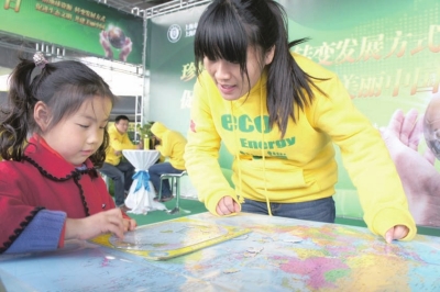 当天,来自上海理工大学和上海理工大学环境科学实践工作站的师生围绕“珍惜地球资源,转变发展方式,促进生态文明,共建美丽中国”的主题,在五角场下沉式广场开展了地球日宣传活动。