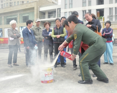 5月12日是全国第五个“防灾减灾日”。昨天,五角场街道双拥办和汇元坊居委会邀请武警国定消防中队的消防教官为小区居民和物业管理人员举行了一场以“家庭防火”为重点的实用防火和应急知识普及培训。