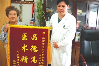 韩鸿娣指着自己膝盖上两条6厘米长的伤口告诉记者:“你看,这是凃医生给我动的微创手术,两条腿各换掉‘半个关节’,只缝了5针,这两天已经能下床走动了,技术真是太精湛了,我要好好谢谢他。”