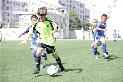 7月15日,为期3天的2013年上海国际少年足球邀请赛在平凉路第四小学开幕。期间,平凉路第四小学足球队、五角场小学足球队、进才实验小学足球队和西班牙少年队将进行足球友谊赛。 ■记者 张维维 摄