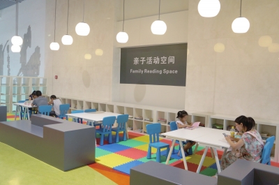 刚开辟的亲子活动空间里,布满了数百本各类漫画作品、美术教材等书籍。旁边还专门为家长设置了休息空间,小朋友们在阅读的同时,家长们也可以稍作休息,享受一下悠闲时光。