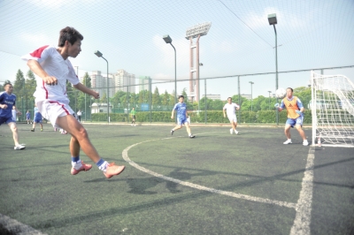 9月14日,2013年上海市民体育大联赛杨浦区职工足球赛开幕。来自全区各委办局、企业的23支代表队参加为了此次为期两天的比赛。 ■记者 张维维 摄