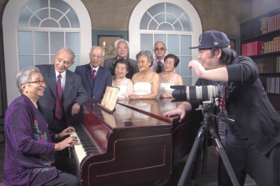 今年敬老节前夕,荣获杨浦区第八批专业拔尖人才称号的谢亮免费为黄宝妹等多位全国著名劳模拍摄肖像艺术照,定格老劳模们幸福的笑容。