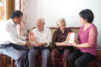 10月10日上午,殷行路250弄居委会联合区妇联、民星邮政局、中国民生银行中原支行的志愿者代表,为辖区内40余位退休老干部、老教师等献上一台精心编排的文艺节目。此外,居委会还挨家挨户走访80岁以上老人,为他们送上长寿面、重阳糕以及保温杯等日常保健用品,当天共送出礼品210余份。