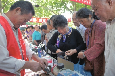 当天早晨7点未到,就有大批老年人等候在活动现场,享受敬老节的“专属”服务。记者注意到,在磨剪刀的摊位前,尽管3位磨刀师傅马不停蹄地工作,每列队伍仍长达十几米。
