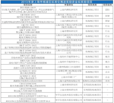 2013年度上海市杨浦区标准化推进奖励资金拟奖励项目