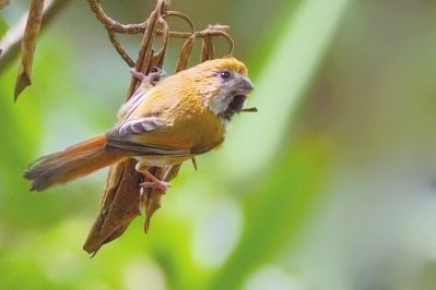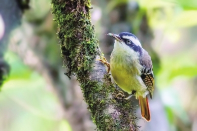 金额雀鹛的模式产地在广西金秀县的大瑶山,想寻觅它却并非只在大瑶山地区。被世人俗称为八桂大地的广西壮族自治区具有的动植物生态资源非常丰富,光是发现有分布的野鸟种类就占全中国野鸟种数的一半。