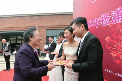 为宣传、鼓励文明婚俗新风尚,自2008年以来,本区每年举办一场主题式结婚登记集体颁证仪式,今年的主题是“爱的传承”。在杨浦学习、工作、生活多年,对杨浦有着深厚感情的3对老夫妇,为现场嘉宾讲述了他们动人的婚姻故事,向6对新人传授了婚姻情感的“保鲜之道”,并为他们颁发了结婚证书。