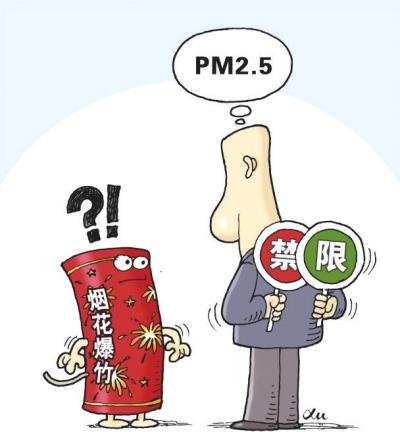 临近春节,我国多个地区继续遭遇严重雾霾,PM2.5指数直逼浓度限值。这让人们在戴着口罩、皱着眉头的同时,再次争论起春节是否该禁止烟花爆竹燃放。越来越多老百姓开始认同,治理雾霾、人人有责,放烟花爆竹的年俗也得与时俱进。 ■新华社 徐骏