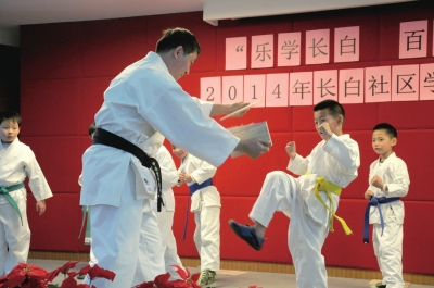 近日,“乐学长白,百姓长乐”——长白新村街道社区学校2014年学习汇报演出举行。长白社区学校的老师和学员们、参加表演的小朋友和家长共两百余人济济一堂,展示各自的学习成果。空手道表演、时装表演和女声小组唱《清晨我们踏上小道》等节目不断给现场观众带来惊喜。