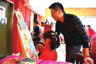 本报讯 2月11日下午,“缘聚五角场”寒假亲子板块油画体验活动新年第一场在大学路举行,白领社区成员代表与孩子们在公益联盟伙伴“创智营”里共同体验油画习作乐趣。