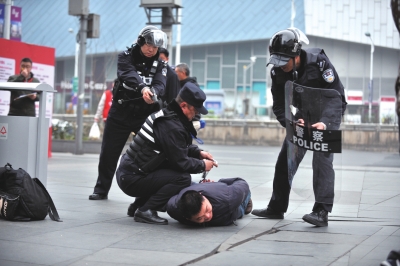 根据市公安局对春节安保工作的统一部署,杨浦公安分局全面启动社会面防控二级勤务等级。其中,2月18日(除夕)、2月22日(初四)、3月5日(元宵)上述三天20时至次日1时,启动社会面防控一级加强勤务等级,包括机关警力在内的全体民警全员上岗,确保最大限度把警力投入街面、压到一线,切实提高见警率与管事率。2月16日上午,区公安分局组织开展专项反恐防暴演练,检验各单位快速反应、多警种协同作战能力。图为演练中,特种机动队队员擒获“暴恐嫌疑对象”。