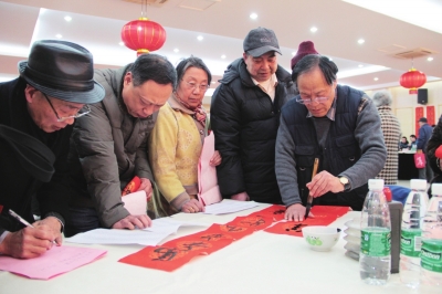 近日,第八届殷行社区春联文化节举行,来自杨浦、梅陇的10位知名书法家与社区书法爱好者共同题写新春楹联。 ■记者 郑潇萌摄